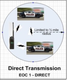Direct transmission provides more limited communication coverage. The repeater is not involved in this mode. Direct transmission provides radio communication between mobile radios that are in close proximity to each other (approximately 1⁄2 mile). This mode shall be used only when directed to do so.